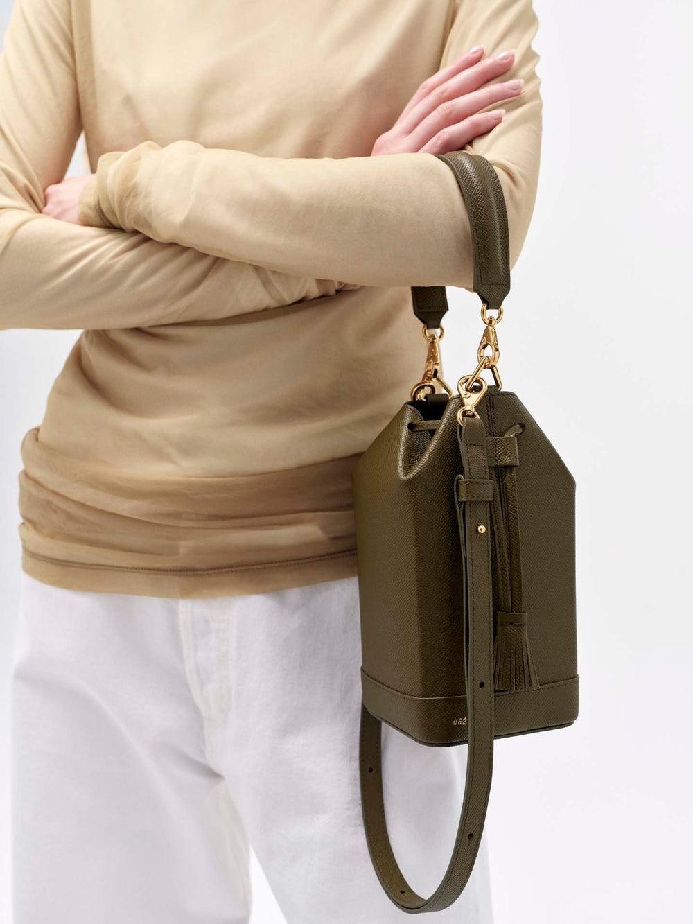 Inspired by a milk carton, the Milkman bag is a small, square-based bucket bag. Its structured geometrical lines and distinctive vertical shape are the fruit of delicate artisanal assembly work.