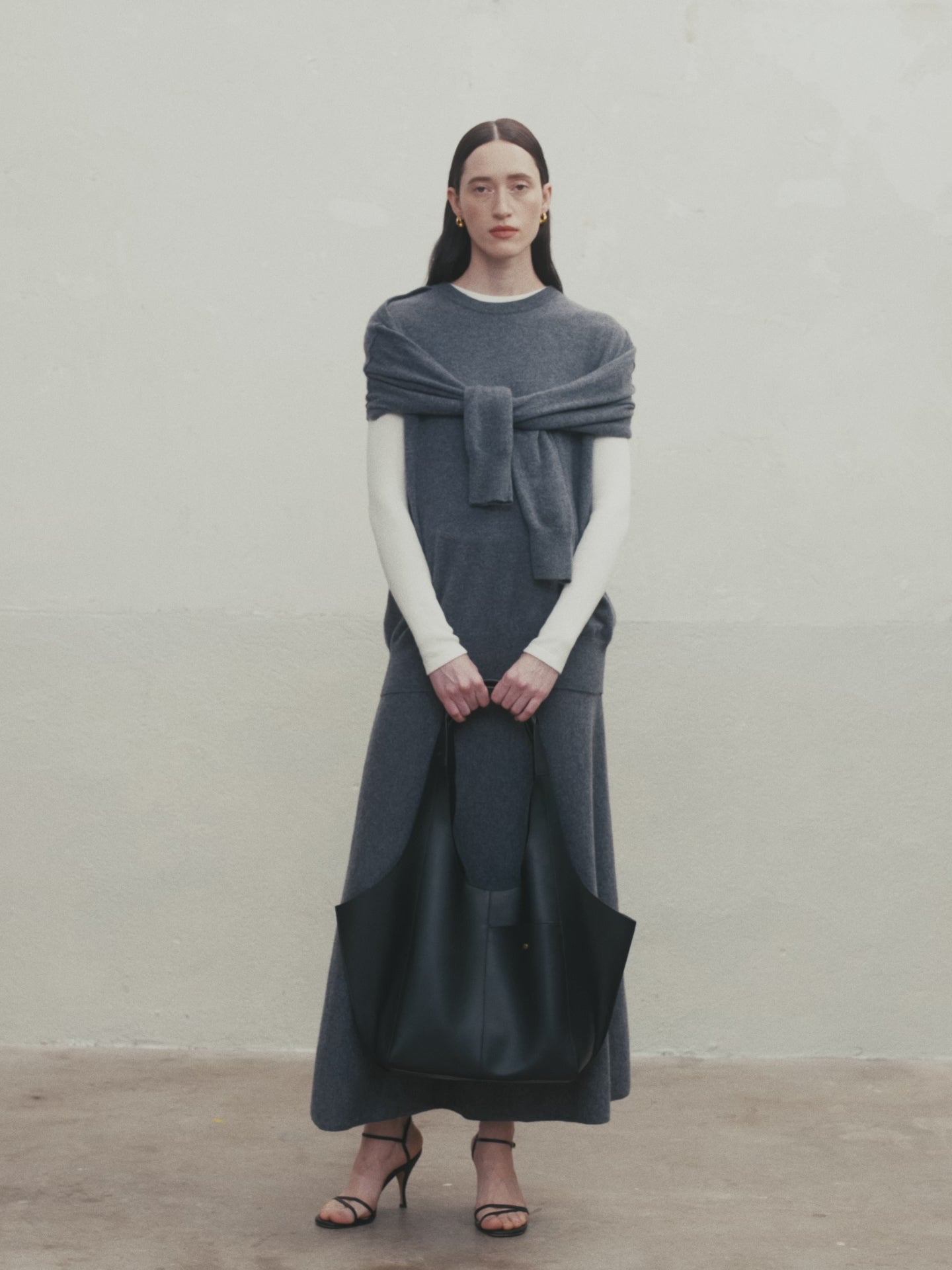 The Parachute bag is a sophisticated oversized tote that seamlessly blends sleek design with intricate craftsmanship. Its architectural structure, anchored by generous leather panels, pays homage to the beauty of both materials and craftsmanship.