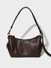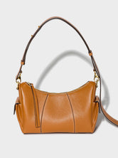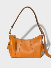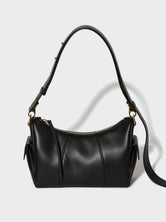 Il possède deux poches latérales et un grand compartiment zippé. Les bords teintés et les coutures contrastées lui confèrent l'aspect cousu sellier si caractéristique de RSVP. Il dispose également d'une large bandoulière réglable pour un porté main, épaule ou croisé.